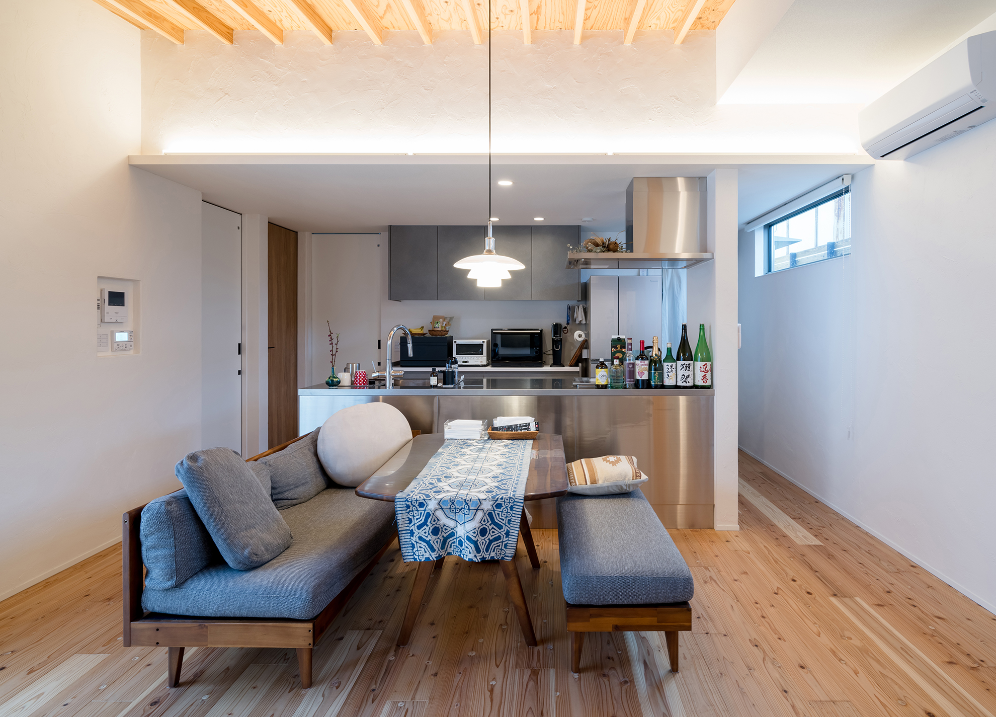 片流れのスタイリッシュな屋根が空間にアクセントを添えます。