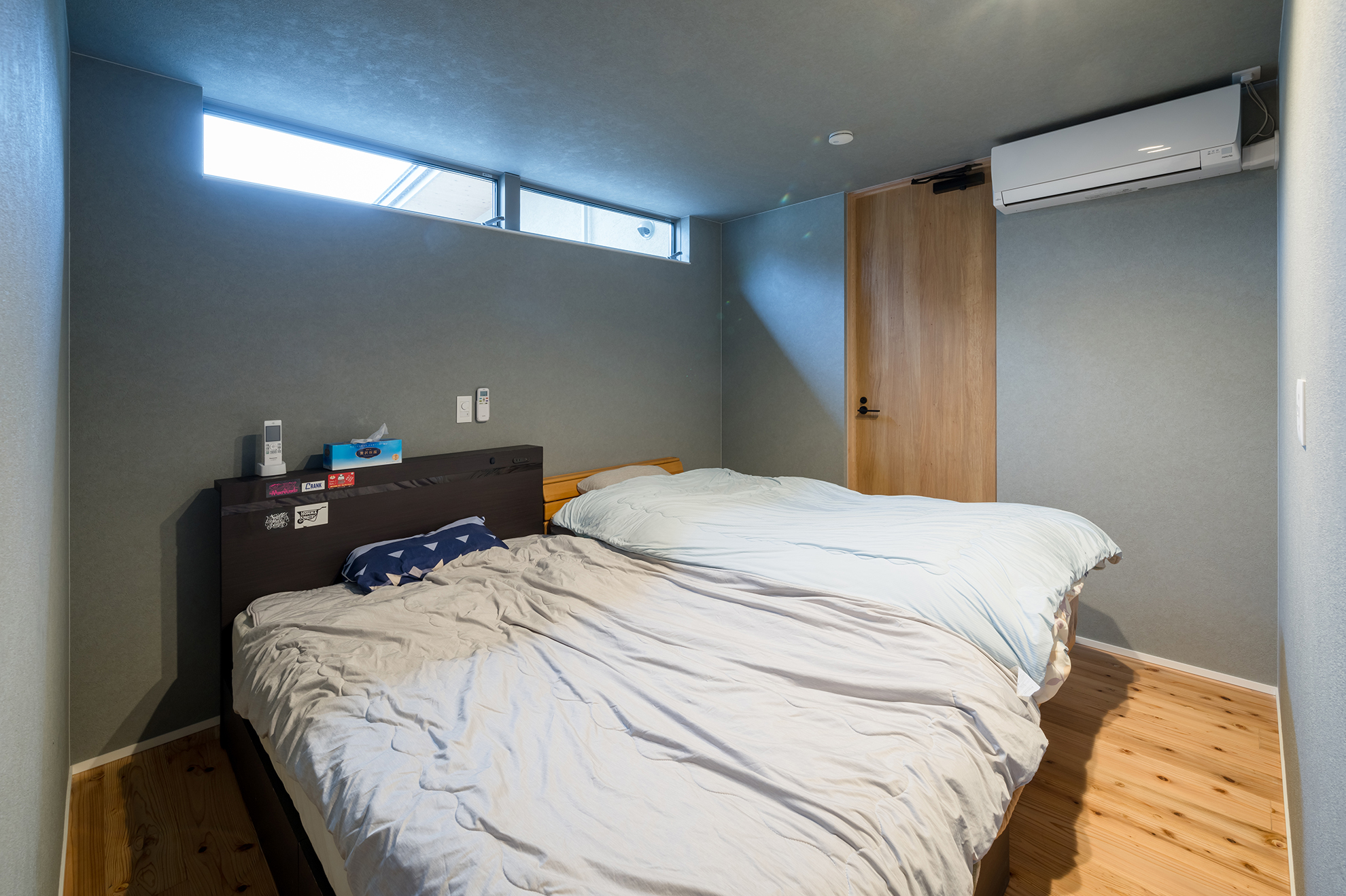 ベッドを中心にゆったり設計された寝室。
