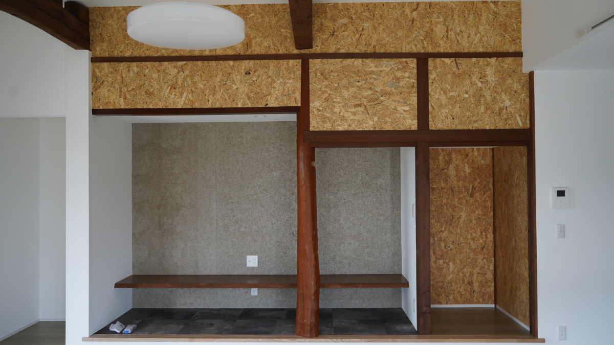 【after】 元ある空間を活用し、テレビコーナーを。既存の床柱が優しい風合いで佇む家族憩いの場所に。