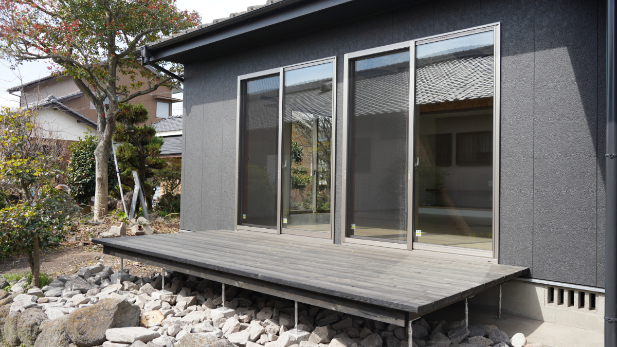 【after】 日当たりのいいリビングからウッドデッキを設置。お家の外へのつながりを感じられます。