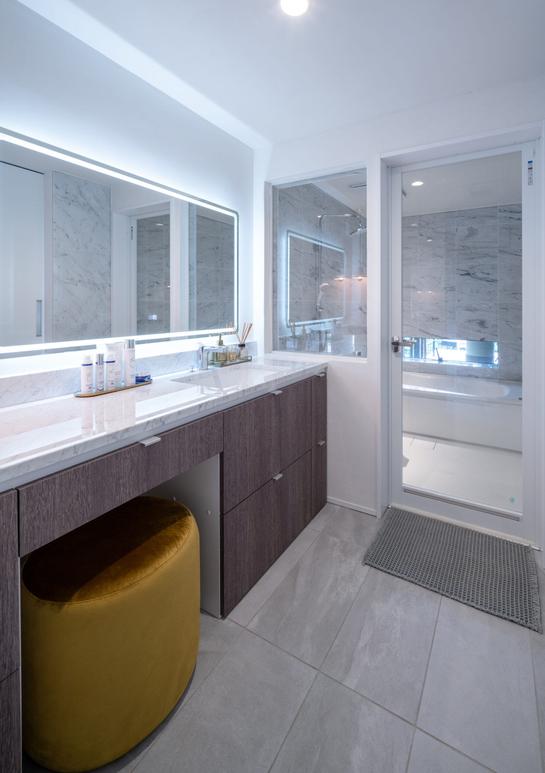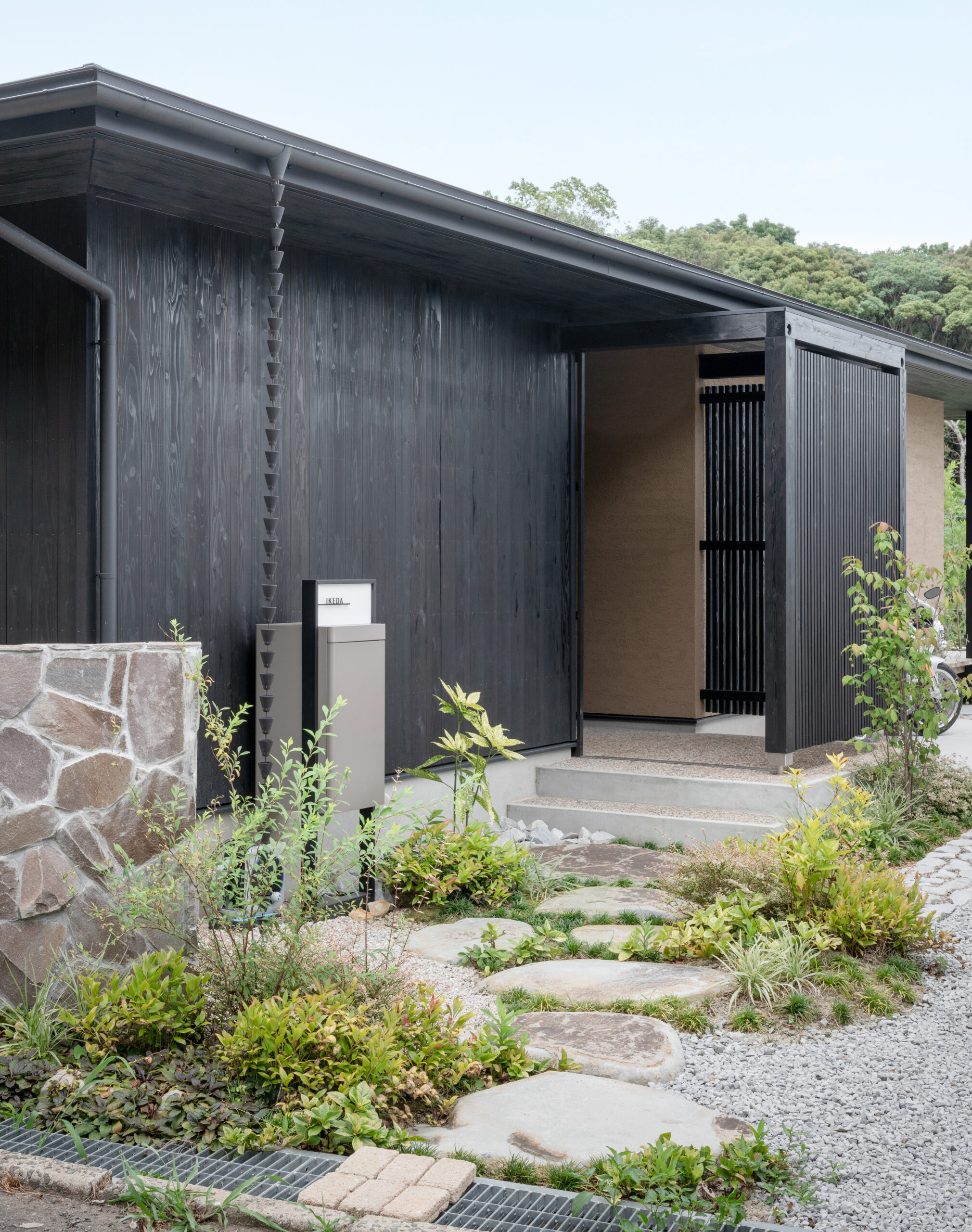 西側に向かって大開口のサッシから約30帖あるデッキがリビングとつながり、開放的な空間になっています。 人工的な素材をなるべく少なく使用し、自然素材で仕上げた優しい建物です。